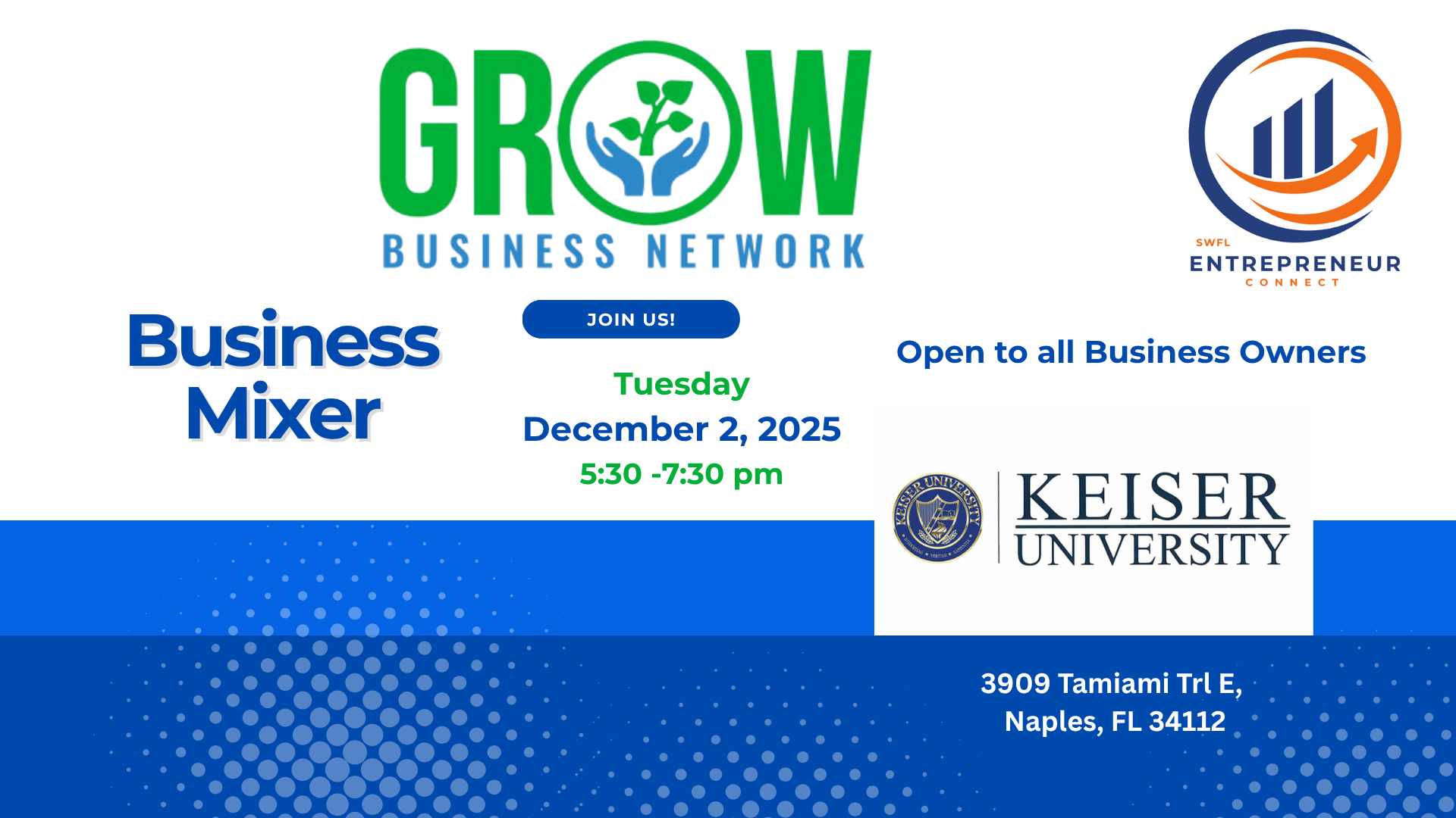Join us Tuesday, December 2nd for the Grow Business Mixer—an evening designed to supercharge connections, strengthen our teams, and welcome new guests into the Grow Network family.